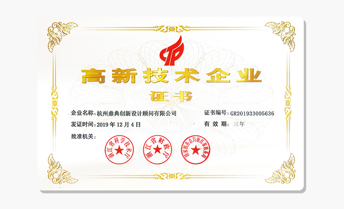 杭州鼎典創造體設計有限公司榮獲 —— 國家高新技術企業認定